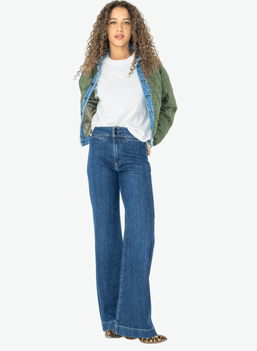 The jean that helped put ASKK NY on the map. The Brighton is a signature style, known for its high rise and full-length, wide-leg silhouette that flatters from every angle. Finished with a classic horn button at the waistband. Mercury is a clean, rich indigo that dresses up or down with ease.