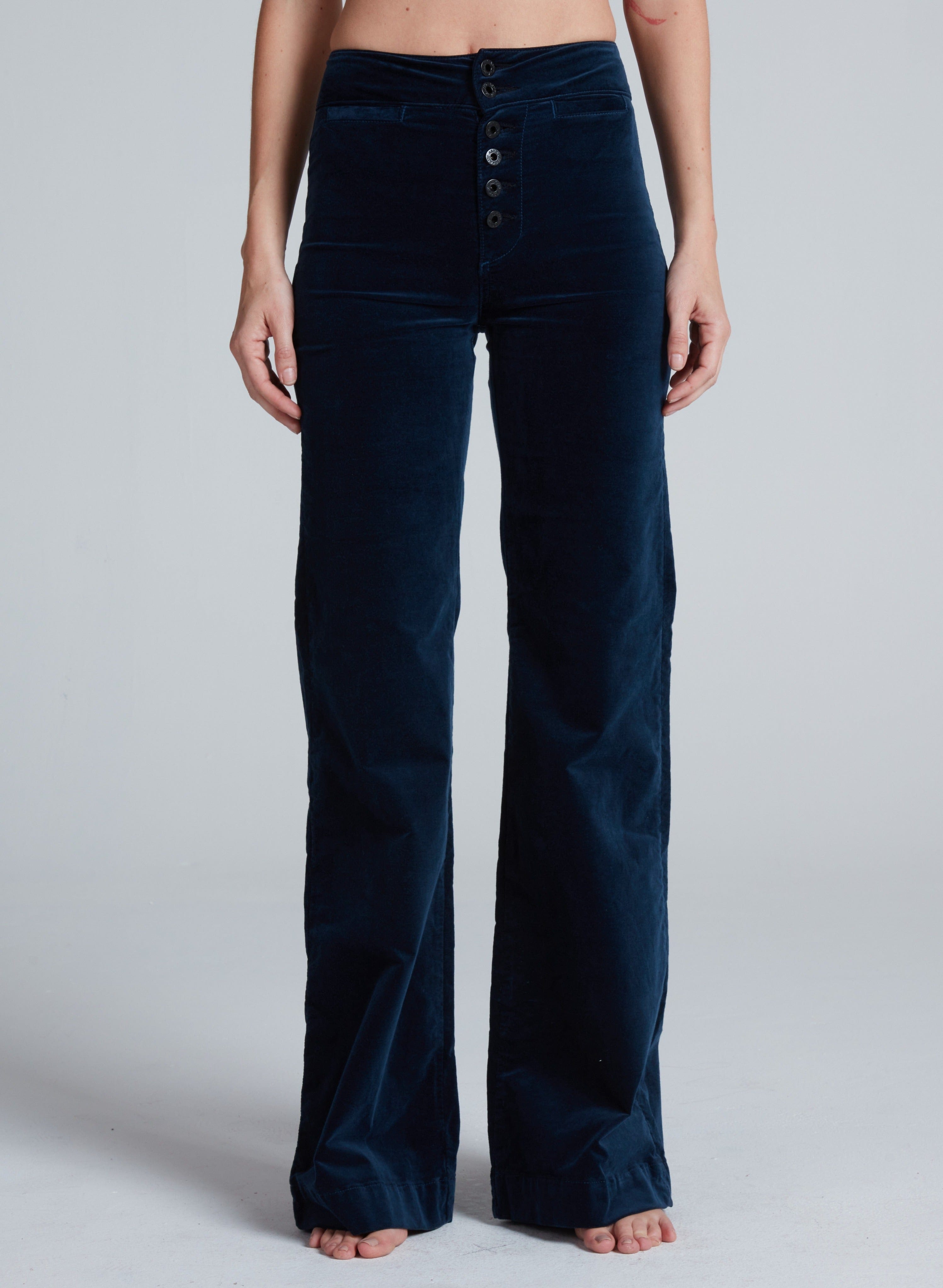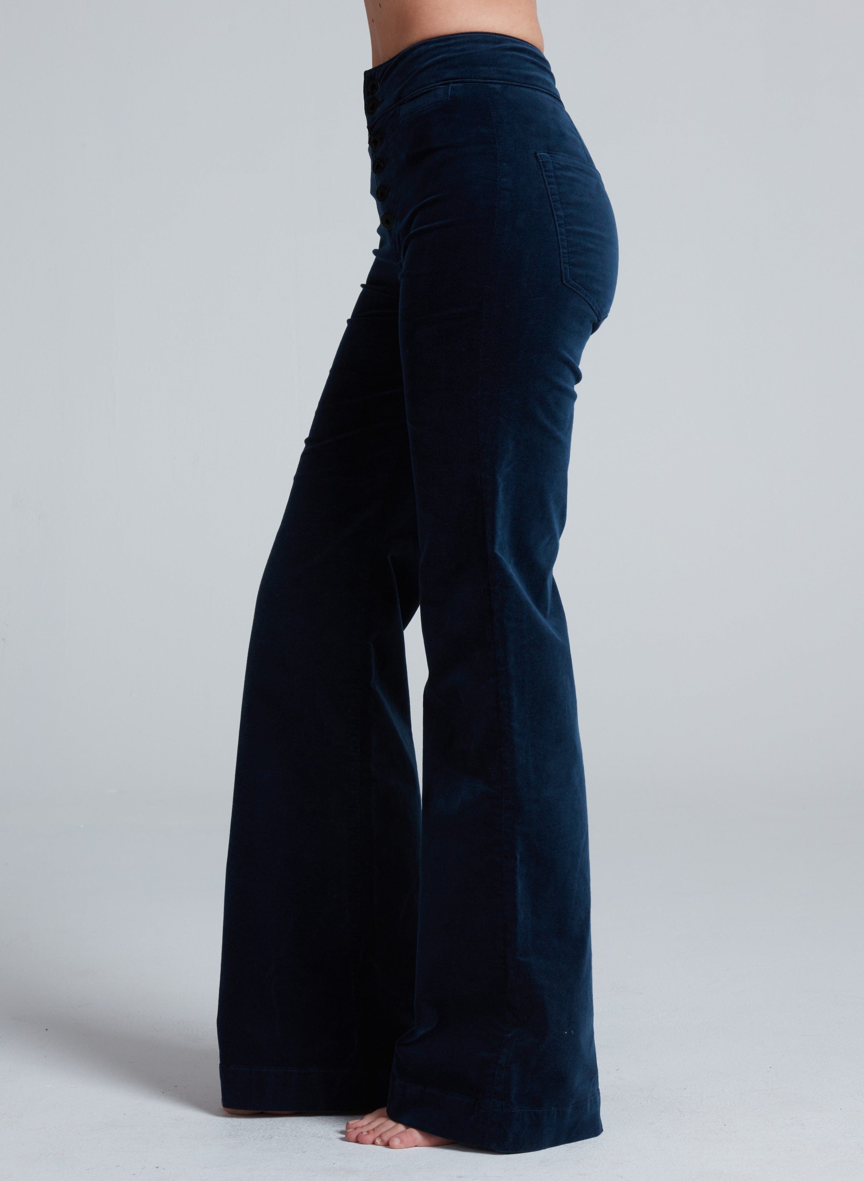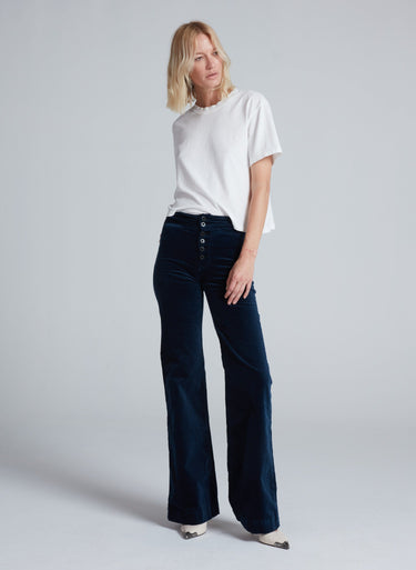 The Brighton is a modern take on a ‘70s silhouette—designed with a high rise, clean lines, and a dramatic wide leg. Reimagined in soft stretch velvet, this style adds richness and dimension to the classic Brighton shape. Finished with button-front detailing and an elongated inseam, it balances vintage polish with a touch of everyday ease.