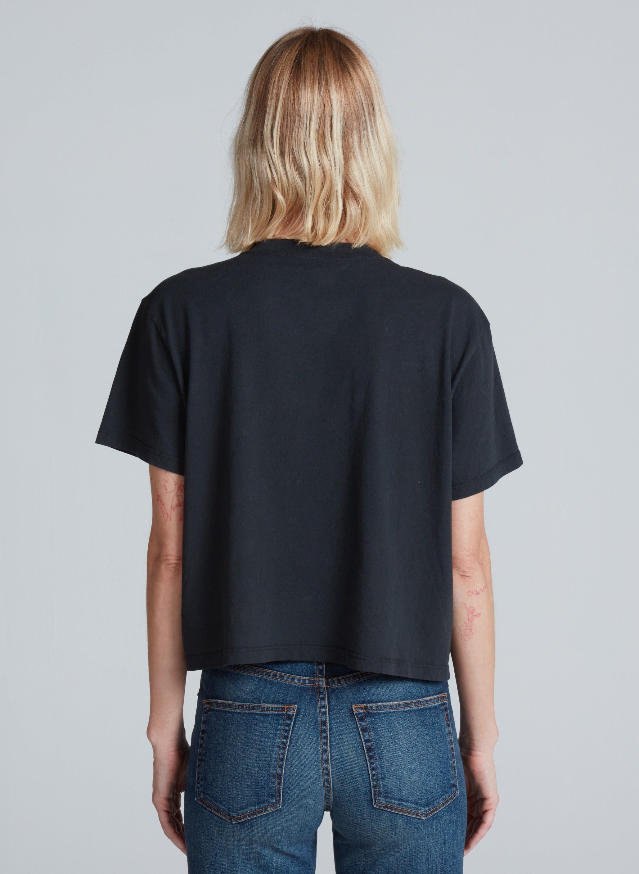 The Shrunken Boy Tee is a classic crewneck updated with a cropped, shrunken fit. Each version features a unique graphic design, adding personality and a playful edge to this everyday essential. Made from soft American knit cotton, it's lightweight, easy to wear, and perfect for pairing back to denim.