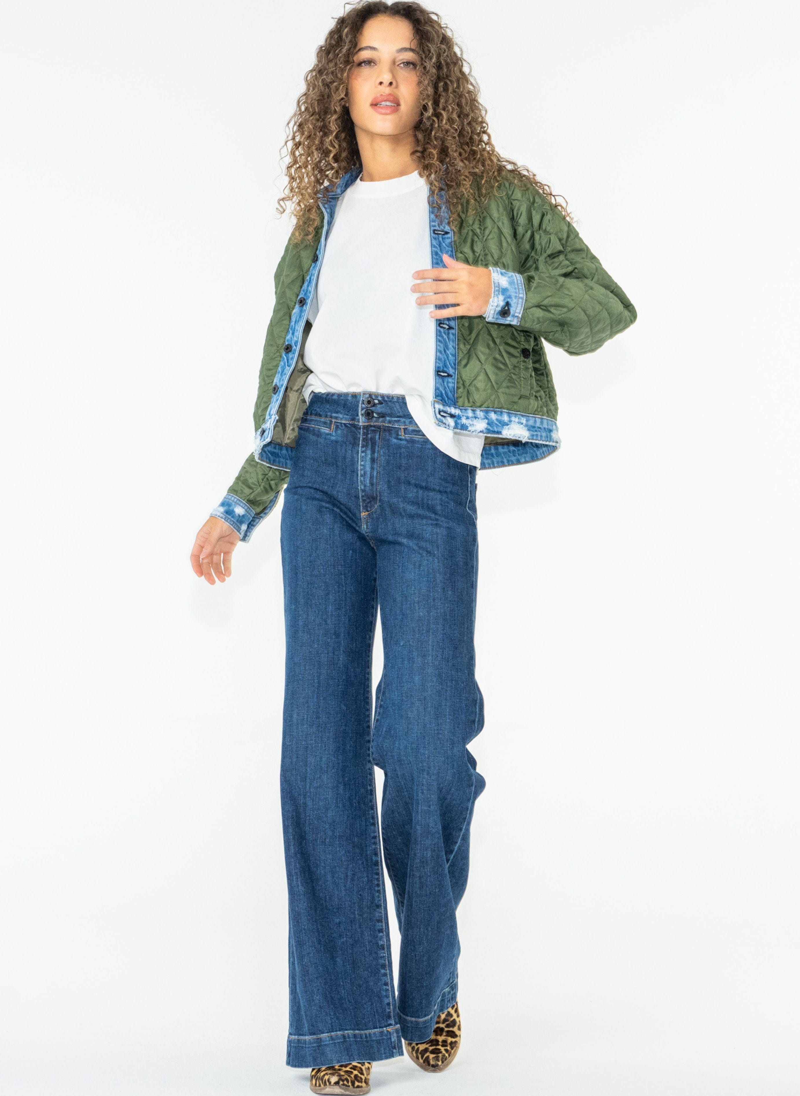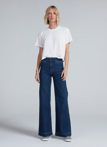The Brighton is a modern take on a ‘70s silhouette—designed with a high rise, clean lines, and a dramatic wide leg. Cut from dark stonewashed Japanese denim with a touch of stretch, it balances vintage structure with everyday comfort. This style elongates the leg and adds effortless polish to any look.