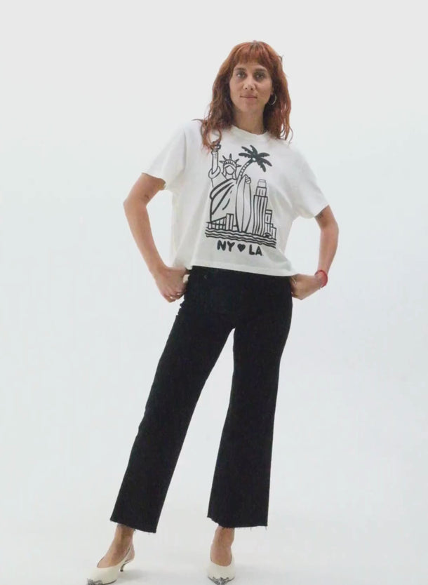 A slim cropped wide leg in a mid weight comfort stretch denim.