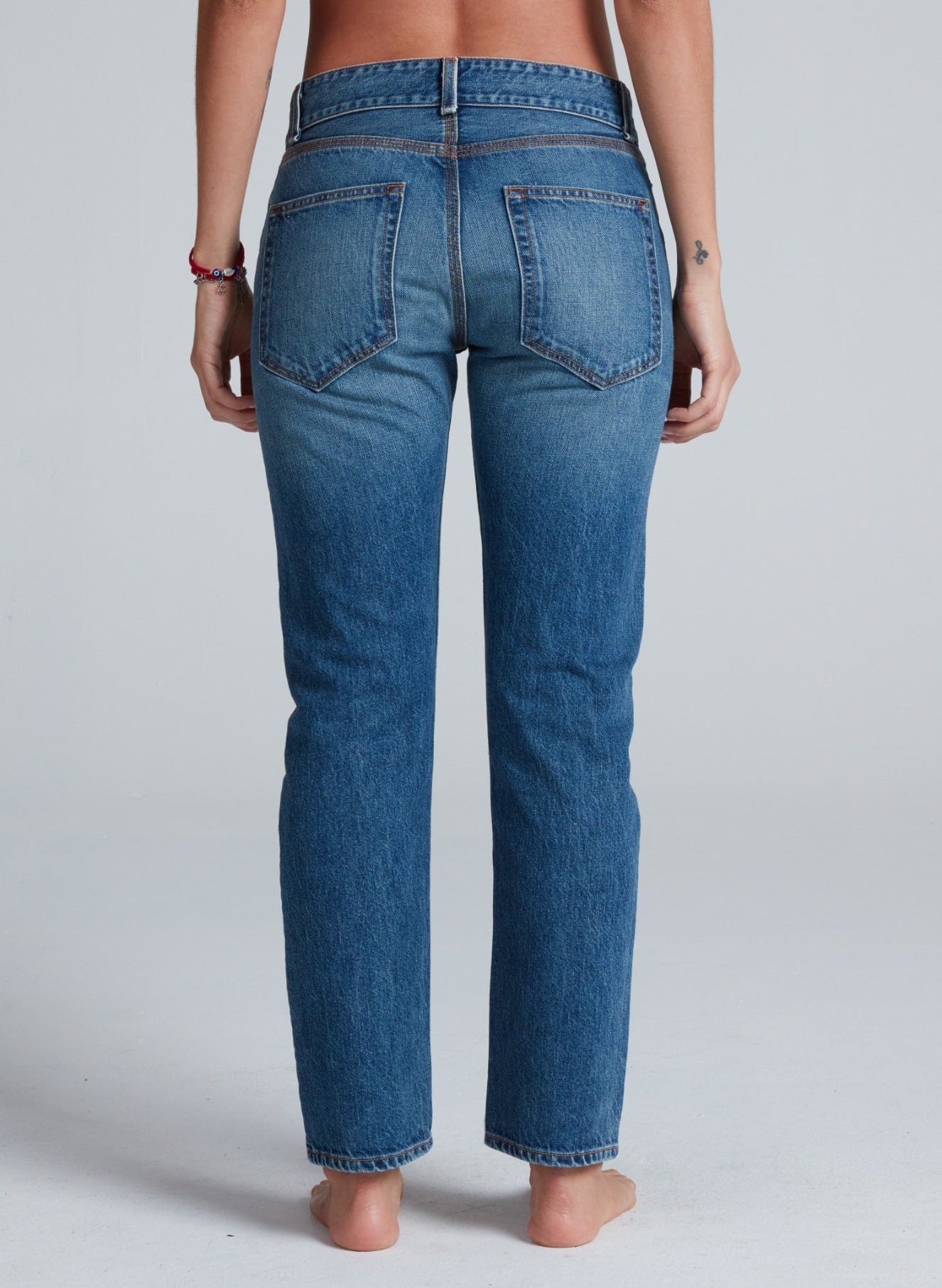The Derby Jean is a modern take on the classic slim straight. With a mid-rise and ankle-grazing length, it's designed to fit close through the hips with a straight, easy leg that works with sneakers, sandals, or heels. A versatile everyday jean with just the right amount of ease.