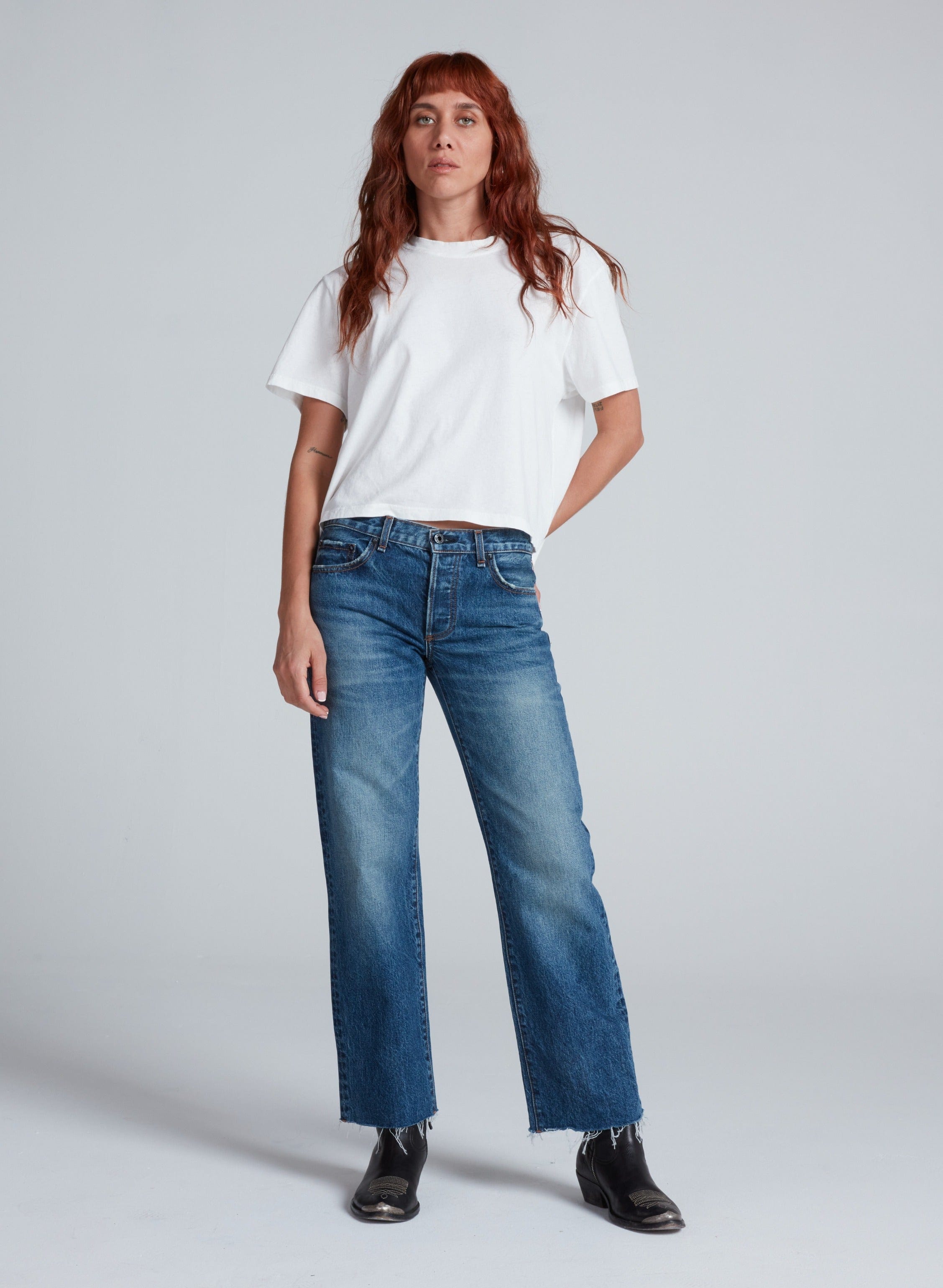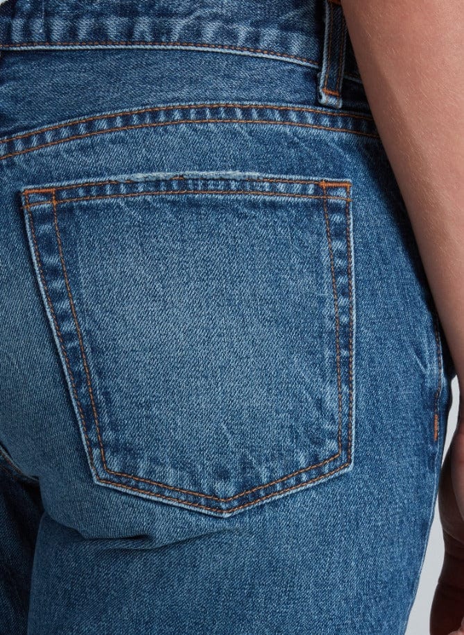 The Low Rise Straight is designed with a low rise, straight leg, and easy fit through the hip. Finished with a cropped inseam and raw hem, this style balances laid-back attitude with a clean, modern shape. Made from rigid Japanese denim, it's the perfect jean for effortless everyday wear.