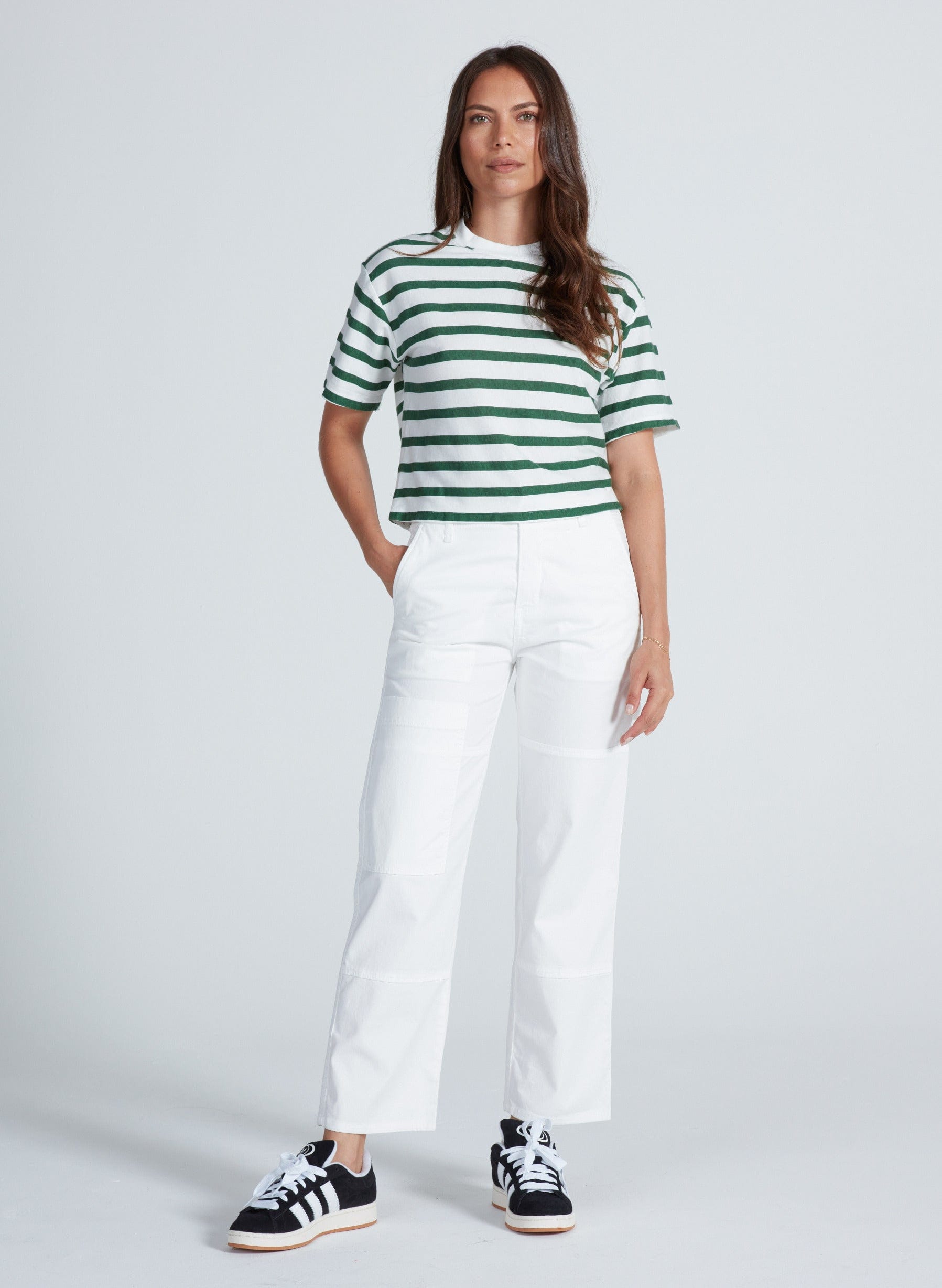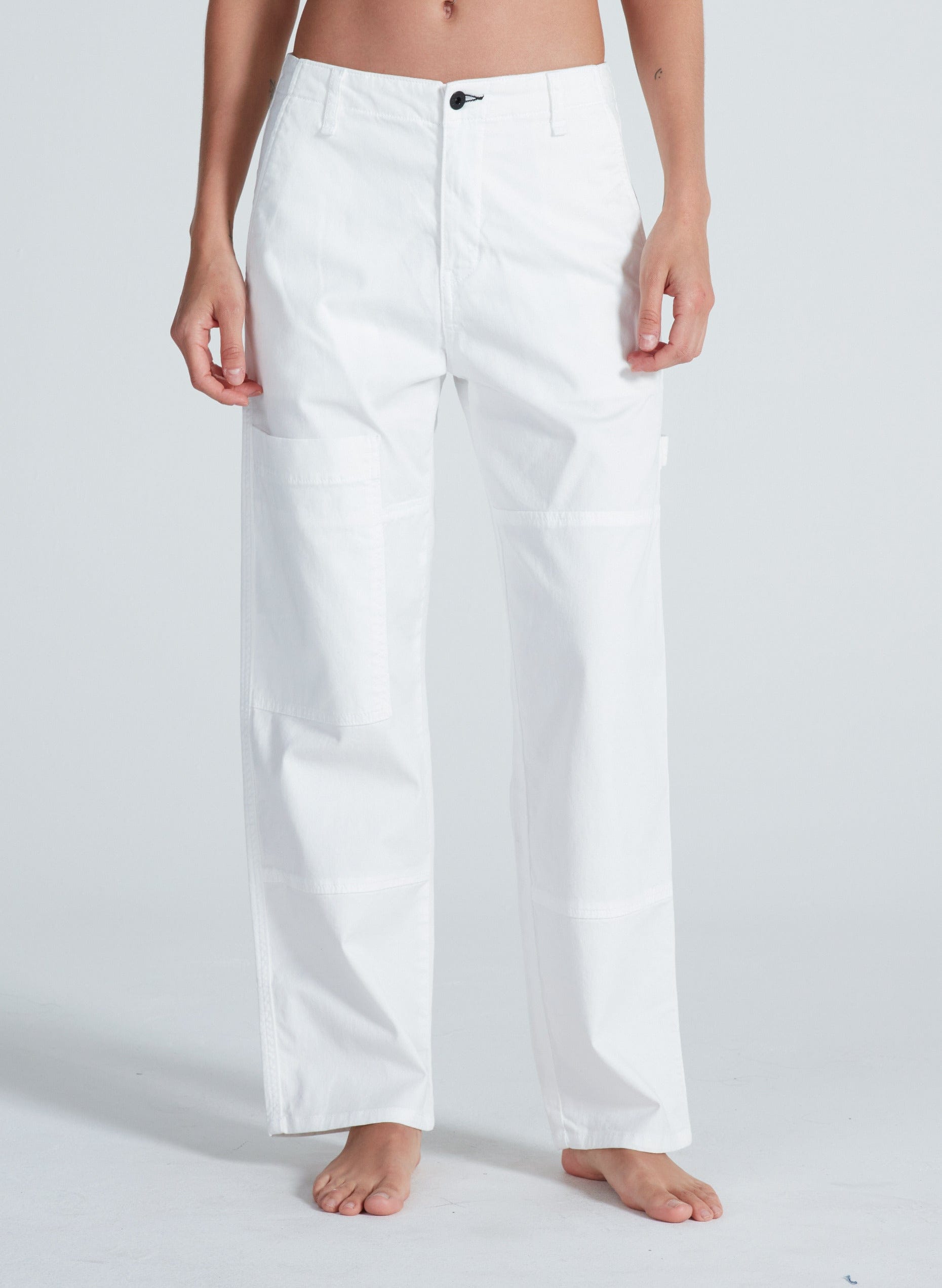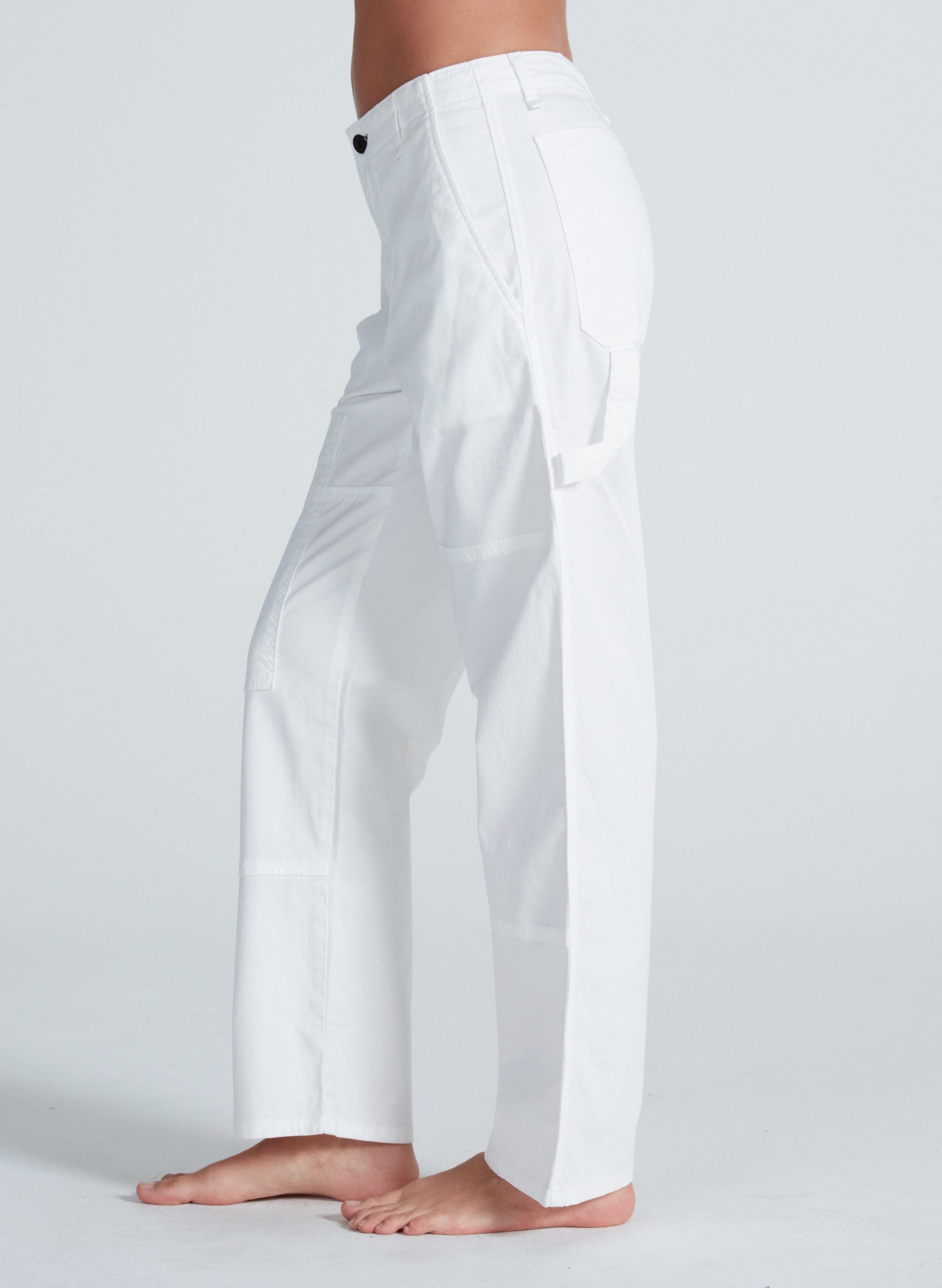 The Carpenter is a high-rise utility pant with a straight leg and a relaxed, workwear-inspired feel. Designed to sit at the natural waist, it offers room through the hip and thigh without feeling oversized. Finished with classic carpenter detailing, it balances function and ease in a clean, everyday silhouette.