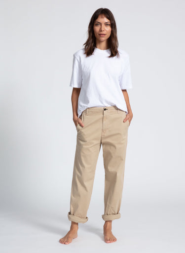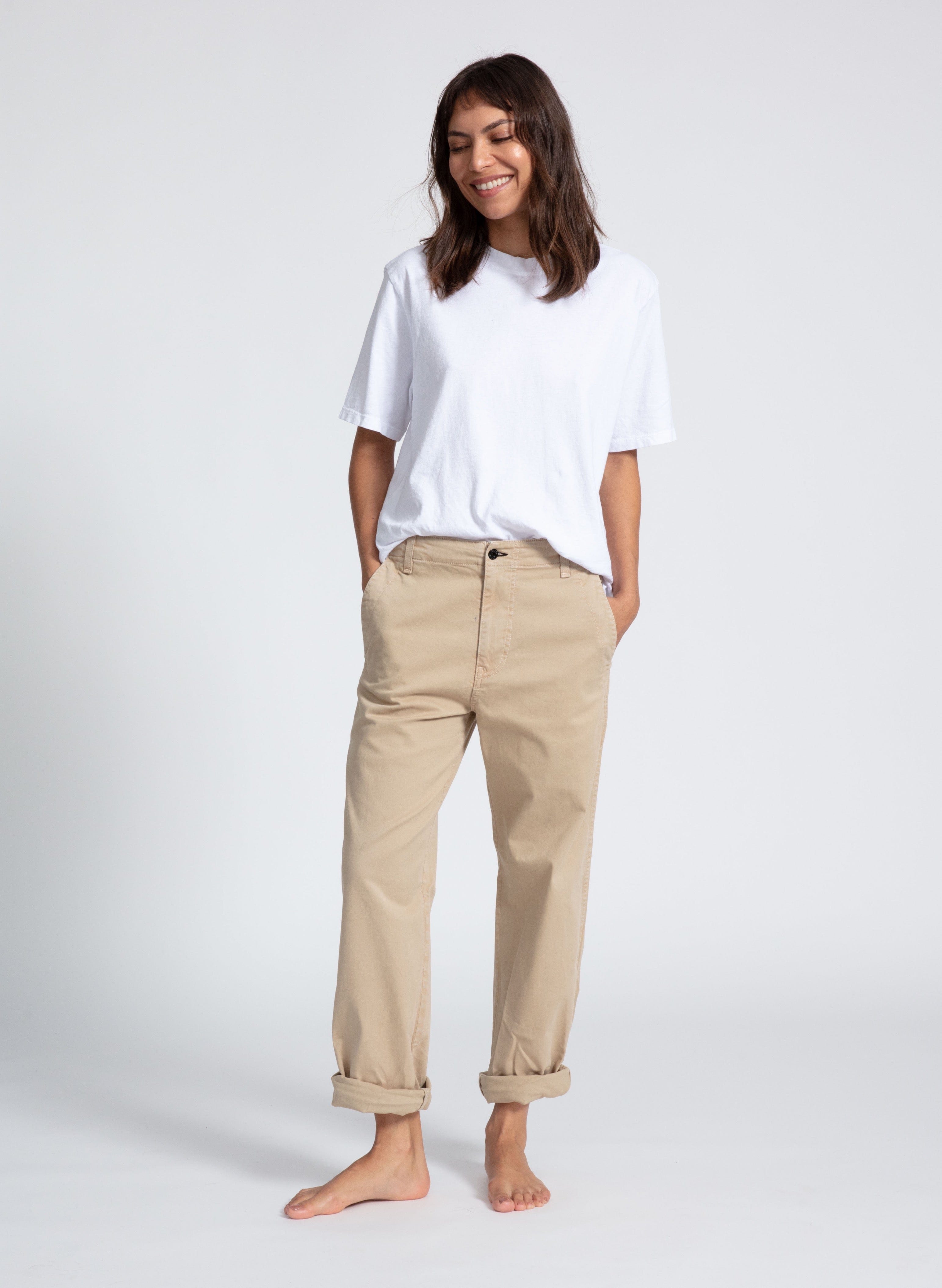 Relaxed, slightly slouchy, and intentionally casual. Our Chino is a laid-back pant with a dropped rise, cuffed hem, and subtle workwear inspiration. Made from soft stretch twill that wears in beautifully with time.