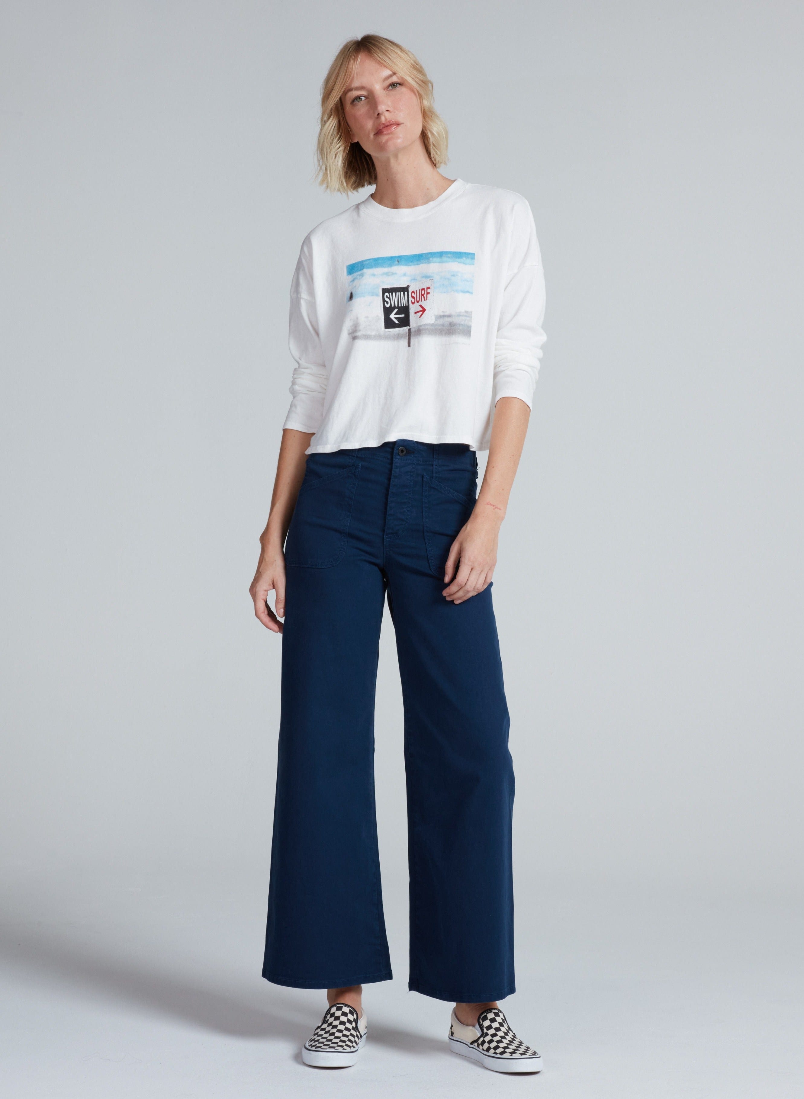 A playful take on a classic silhouette, this cropped long sleeve tee features a bold graphic for a pop of personality. Designed in a relaxed fit with a soft, breathable feel, it's made from 100% American knit cotton for everyday wearability and standout comfort.